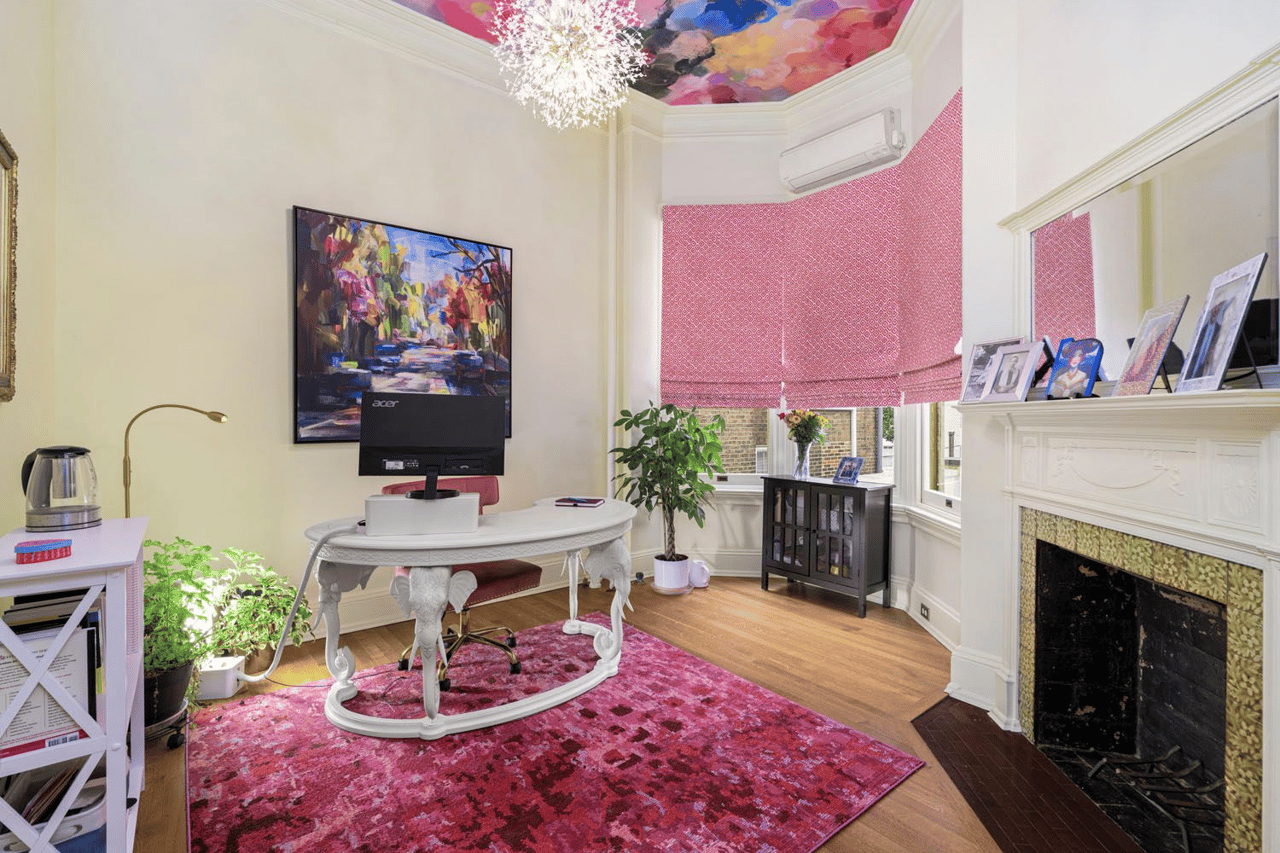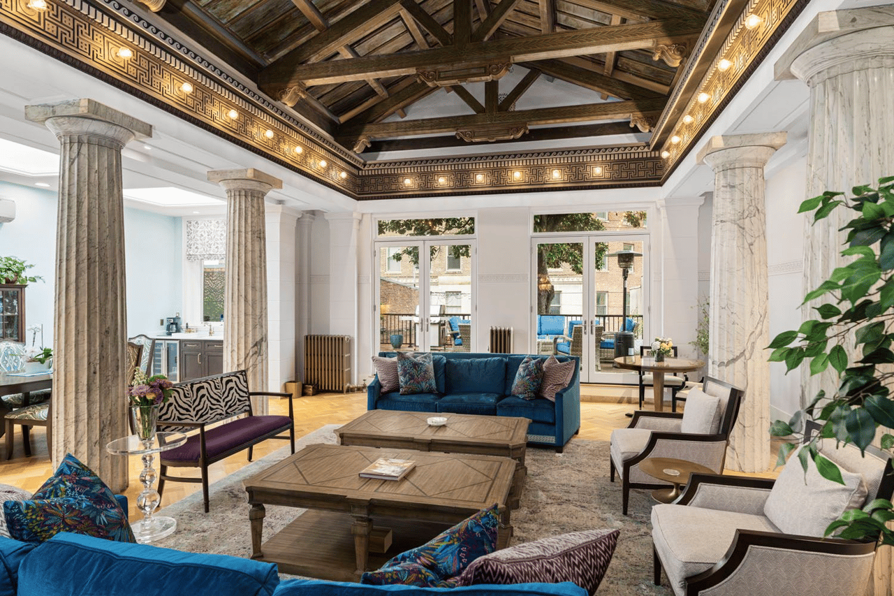 Highlights include seven bedrooms, five bathrooms, an elevator, and easy access to Penn Station for seamless travel to D.C., Philadelphia, and New York. Inside, discover a chef’s kitchen with Thermador appliances, a breathtaking great room with Italian marble columns, a mahogany-paneled formal dining room, and a spa-inspired primary suite. Original architectural details—11 fireplaces, stained glass, ornate plasterwork—are beautifully preserved throughout.